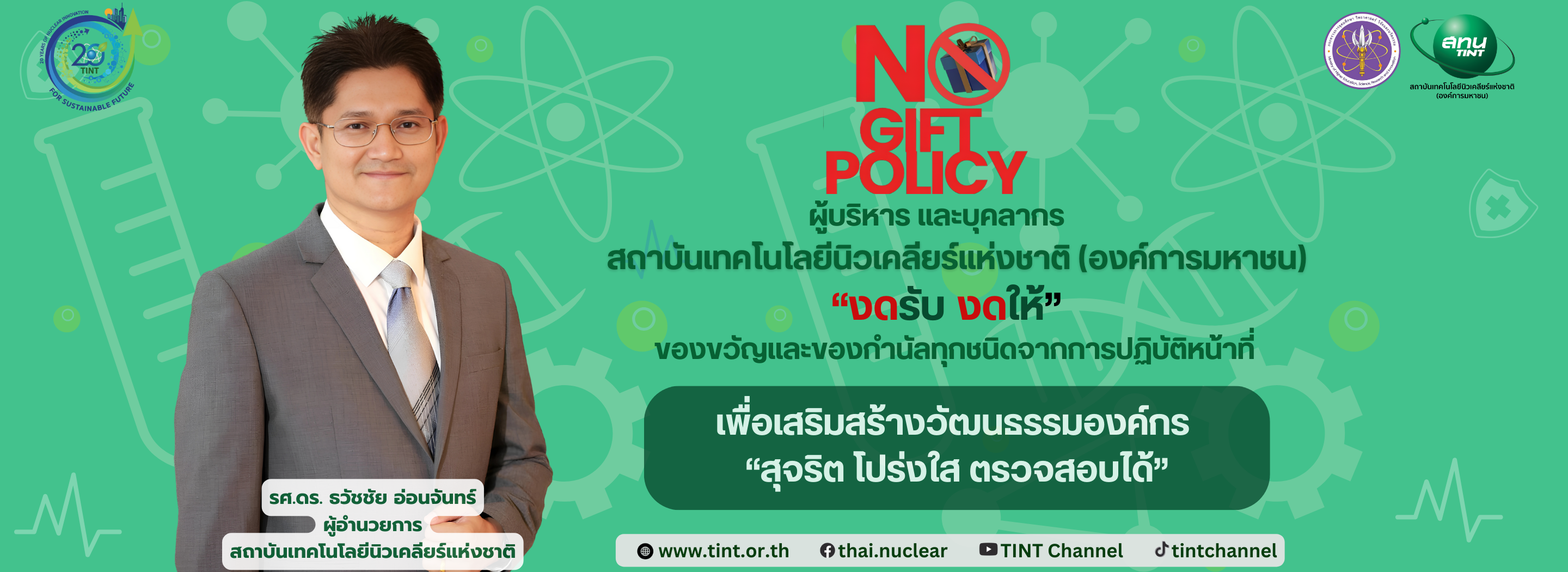 Thailand Institute of Nuclear Technology (Public Organization) or TINT is the organization responsible for implementing research and development, providing services, and transferring knowledge on the utilization of nuclear technology in the areas of agriculture, industry, medicine as well as environment. Our main missions are listed as follows.